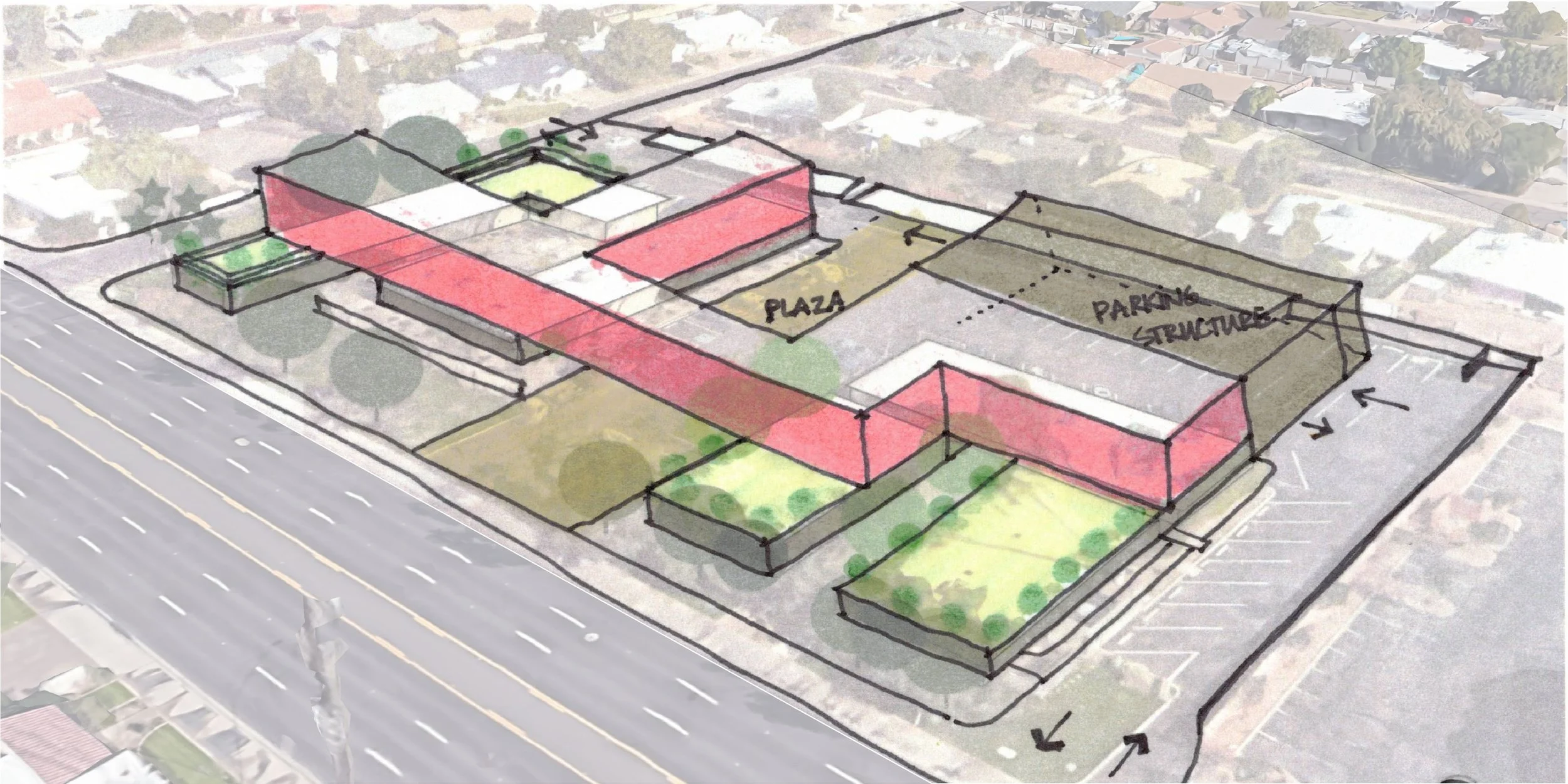 3D visualization sketch for future expansion on existing building foot print. (Site: Tempe, AZ)